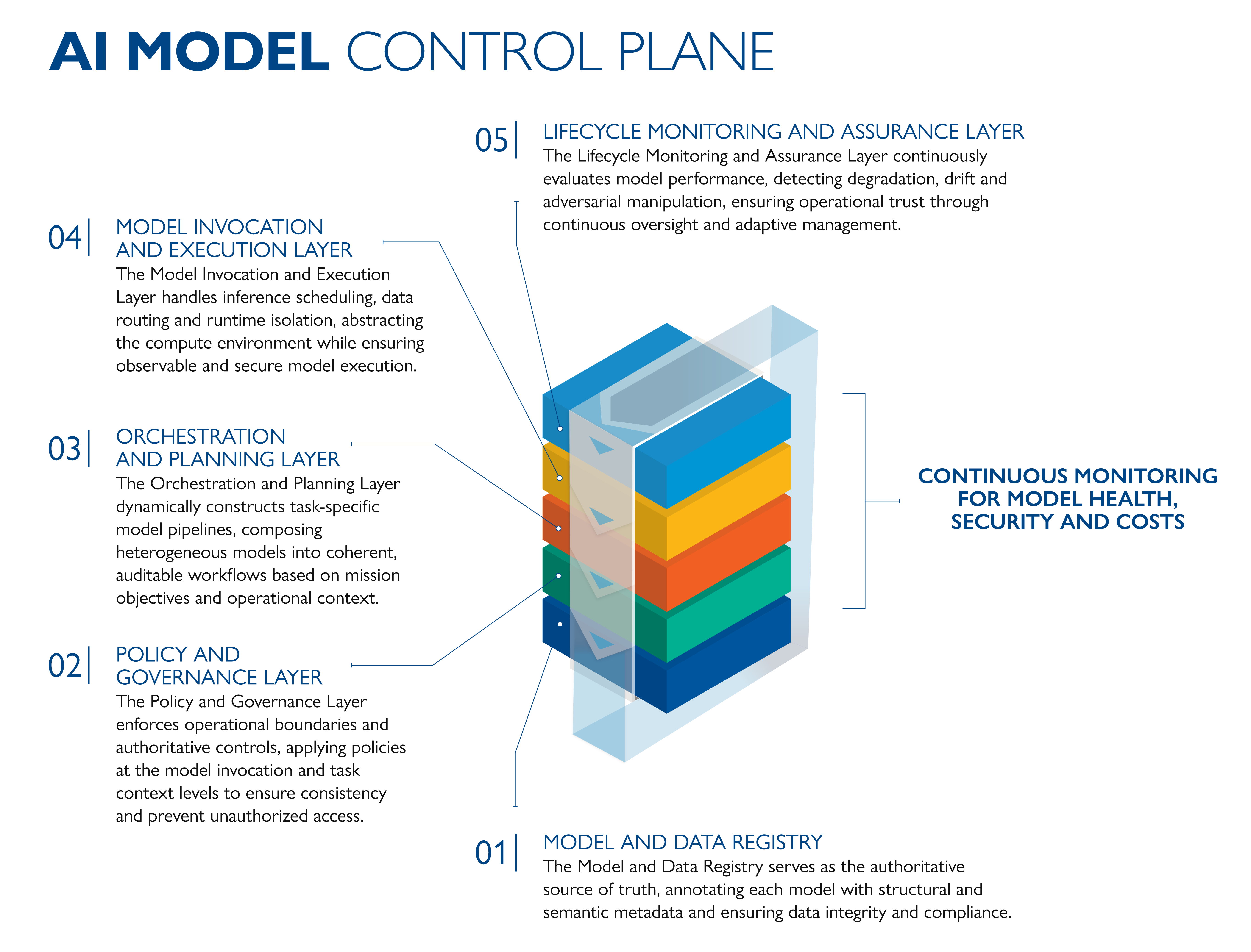 A Foundation for AI FinOps Organizations will face increasingly complex costs as AI workloads diversify across training, fine-tuning, inference, agentic orchestration and on-demand “as a service” model calls (e.g., token-based usage of foundation models). As part of AI lifecycle management, a control plane enables a new frontier of financial transparency and cost optimization: AI FinOps. Through its auditable execution layer and policy-governed invocation, the control plane allows fine-grained logging of resource utilization by model, user, task and mission. That enables cost attribution, budgeting, and throttling at the model level—transforming abstract concerns about “model sprawl” and escalating cloud expenses into actionable insights for CIOs, CFOs and mission leaders seeking cost-performance optimization across their AI investments. |