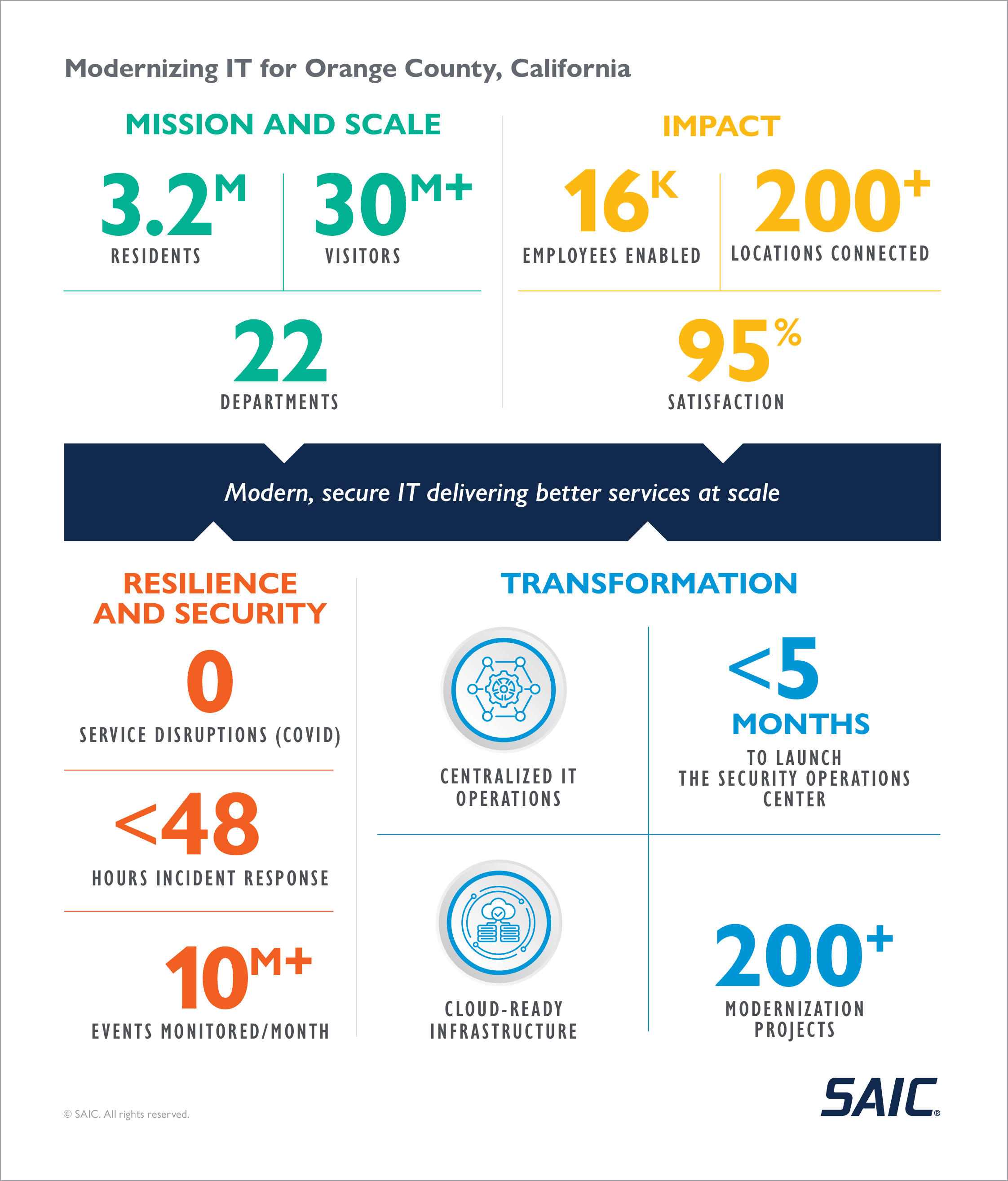 OCIT launched a major effort to rethink how technology can enable our County departments to better serve the public while reducing costs and ensuring that County data and systems are securely maintained. With help from SAIC as their IT managed services partner, the county: